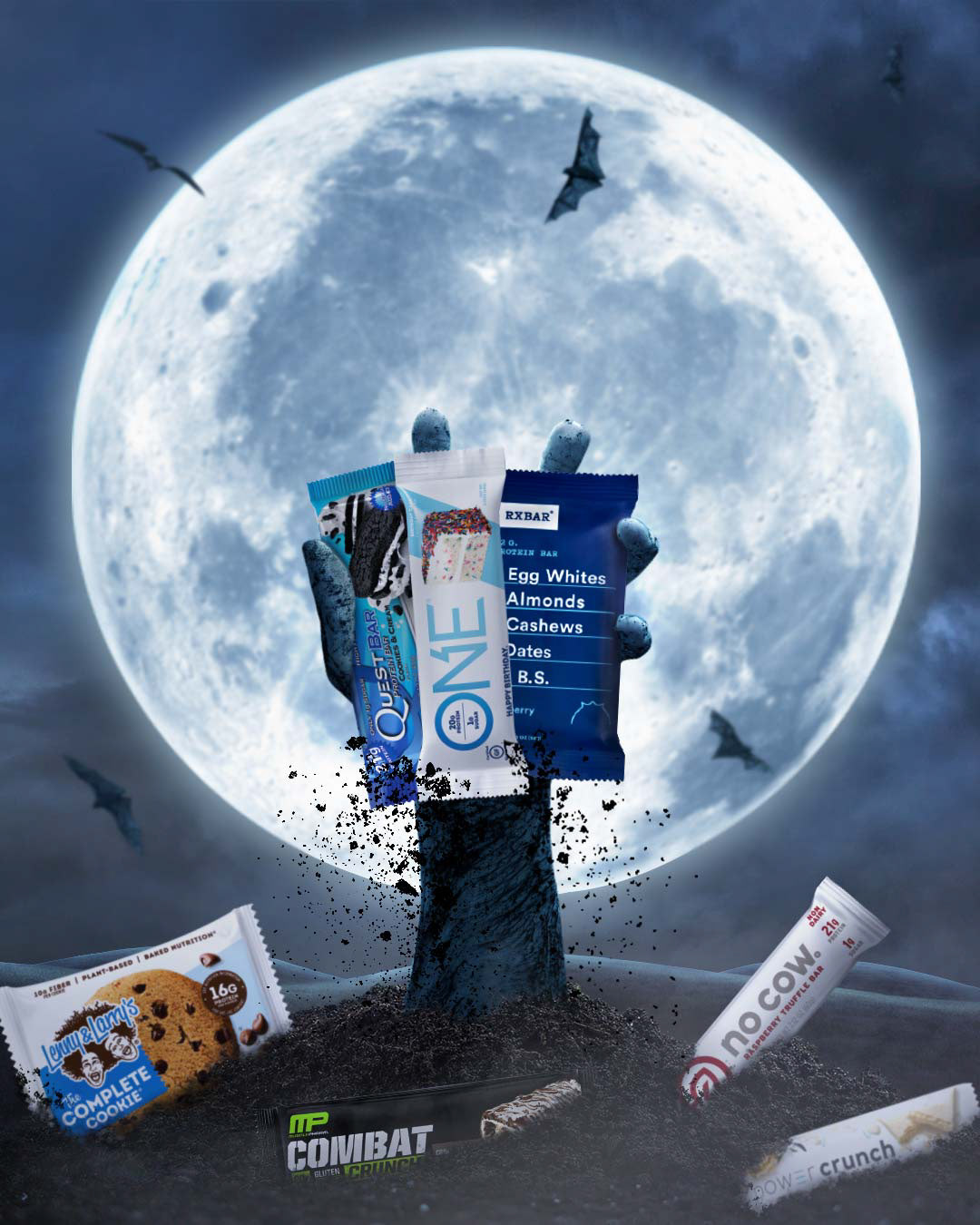 For October, we launched our popular "12 for $20" offer on all single bars and cookies. I was tasked with creating a series of fun, spooky-themed posters for the retail area, as well as static creative pieces for our social channels. The designs were presented to the design, marketing, and retail teams for internal review. Afterward, the selected designs were A/B tested, with the winning creative featured below.