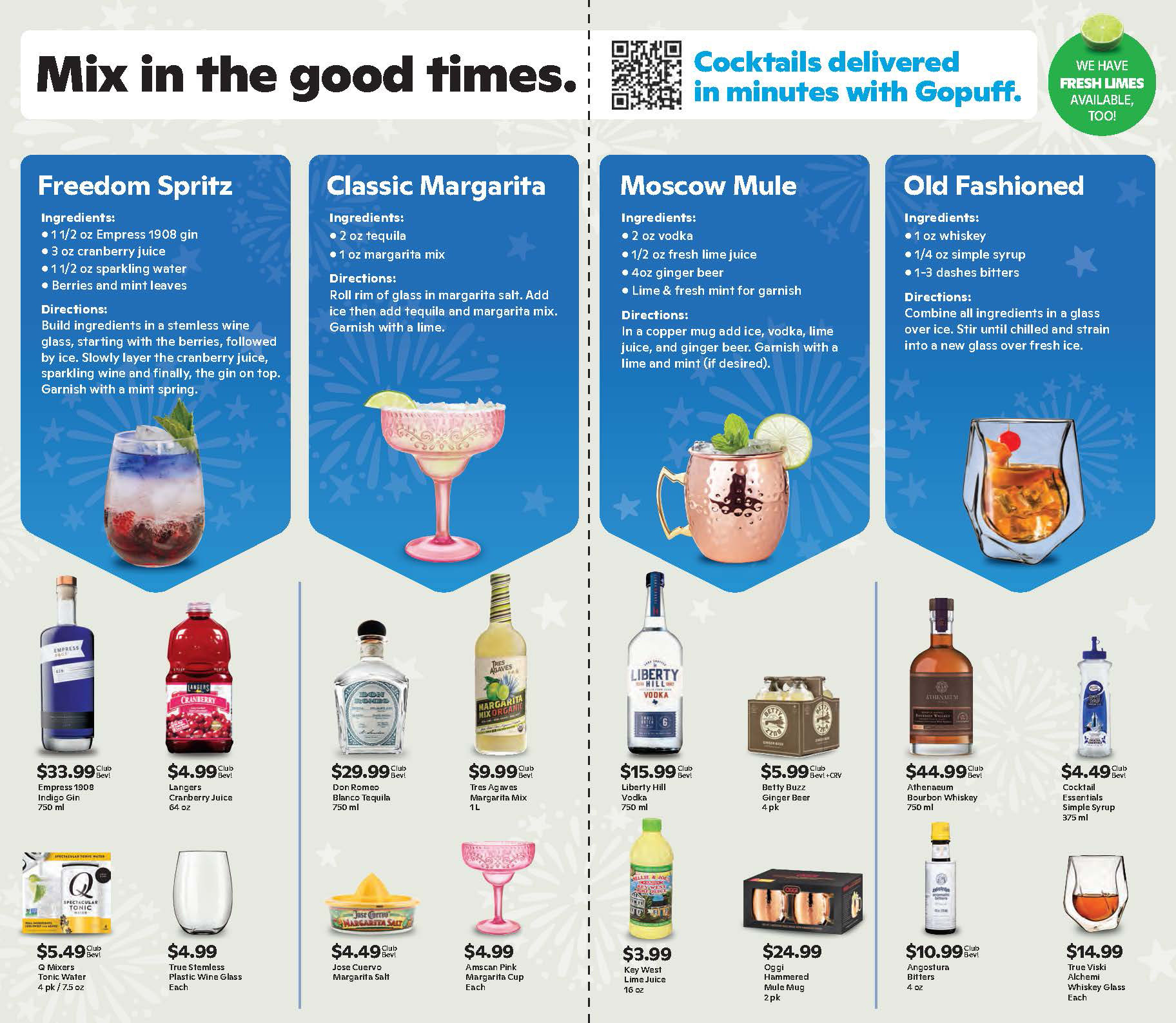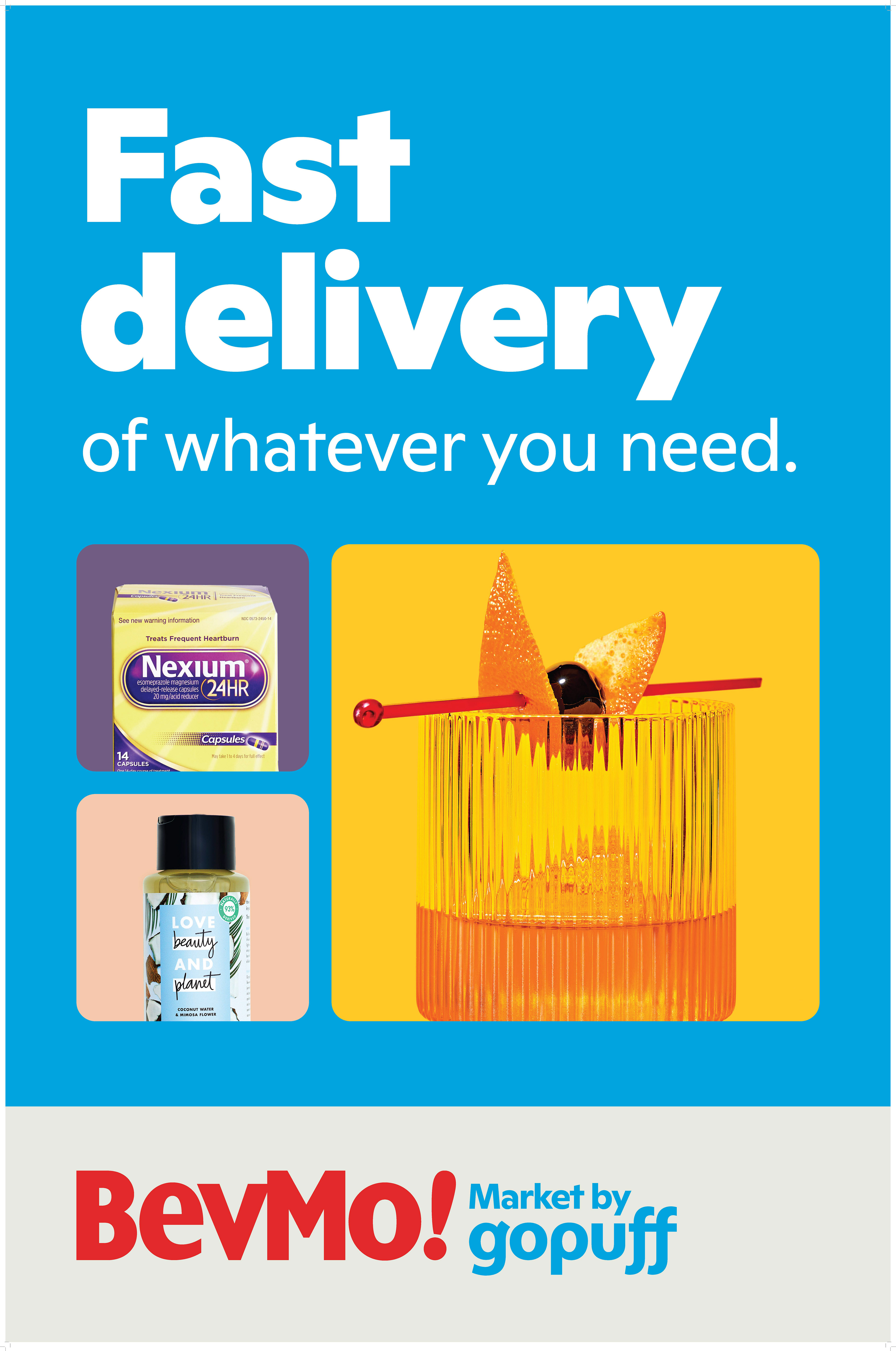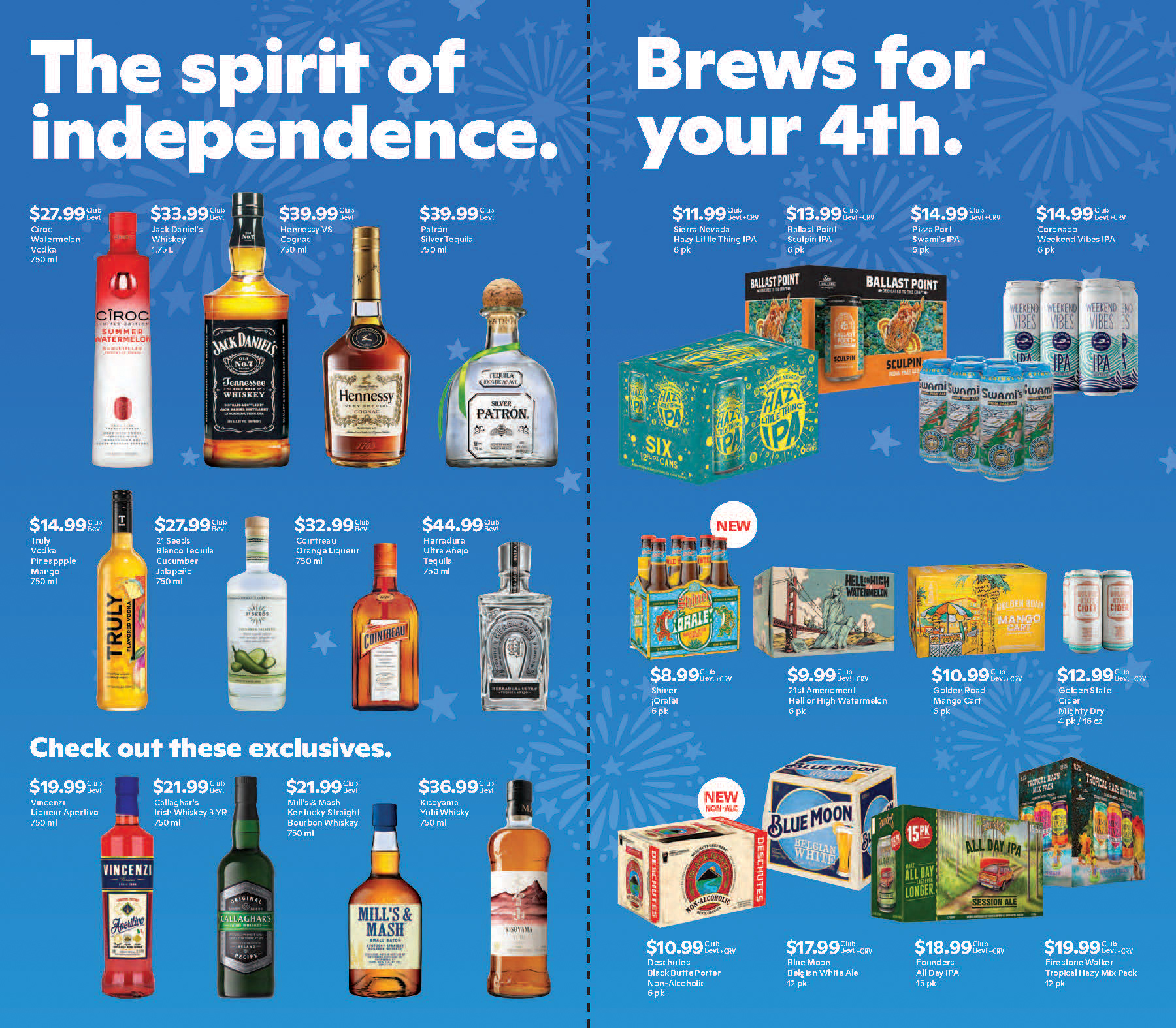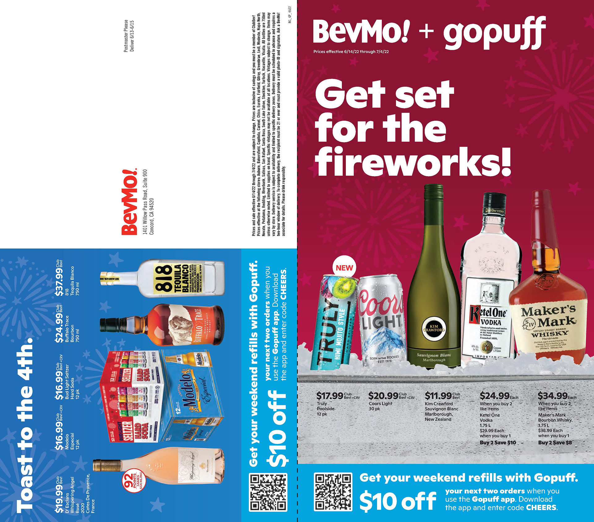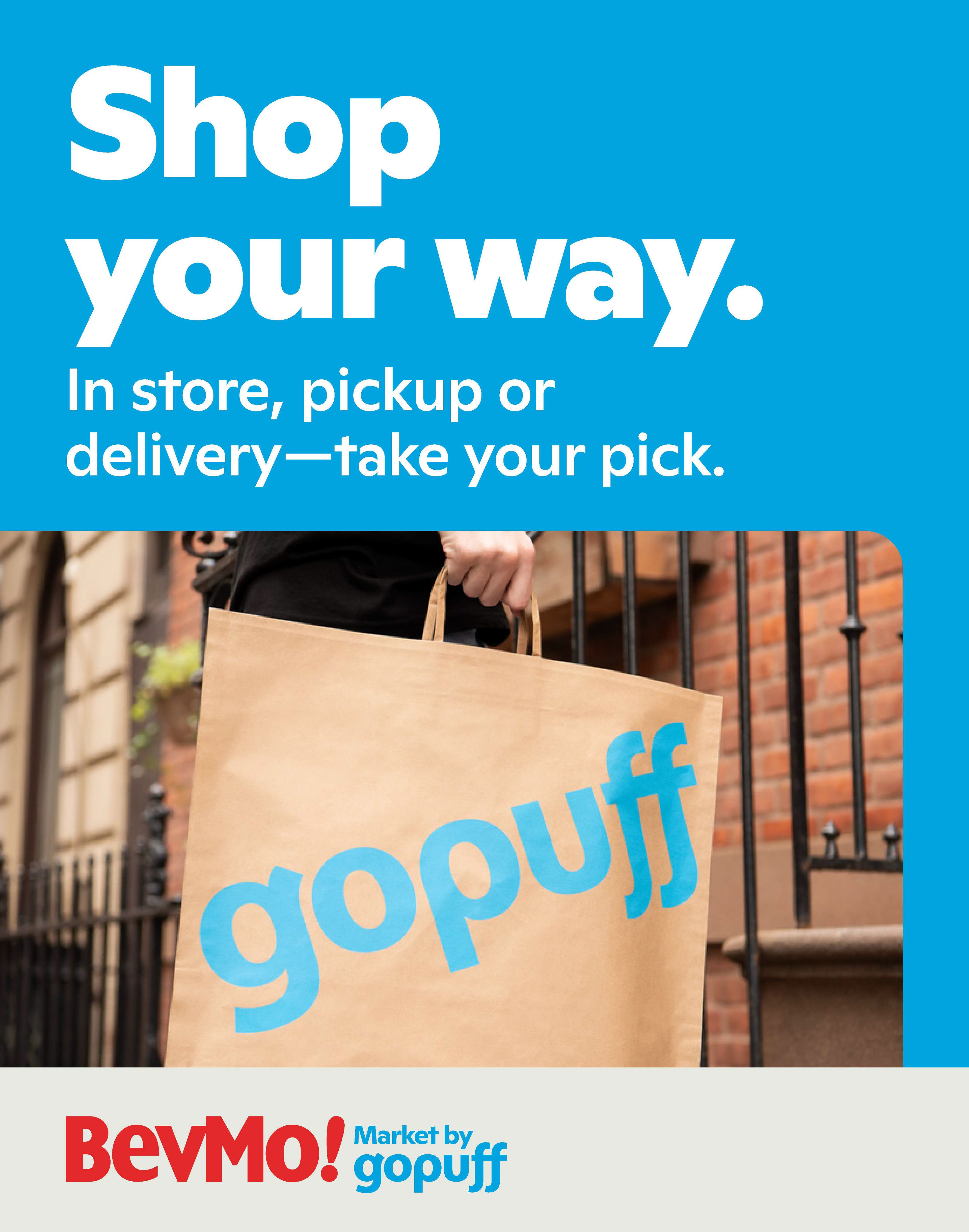 create monthly direct mailer for BevMo! + Gopuff featuring specific drinks.